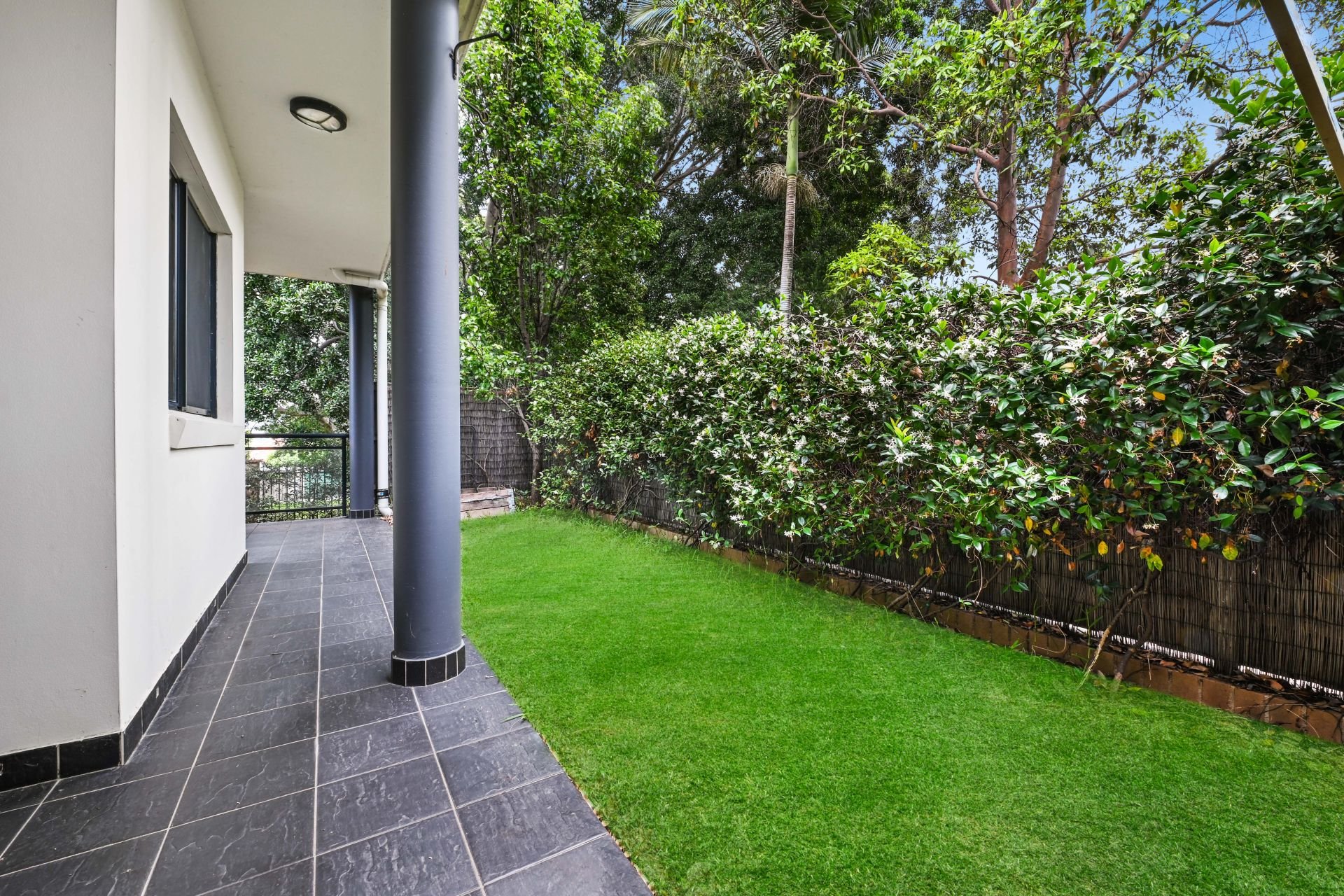 Tiled entertainers courtyard w garden