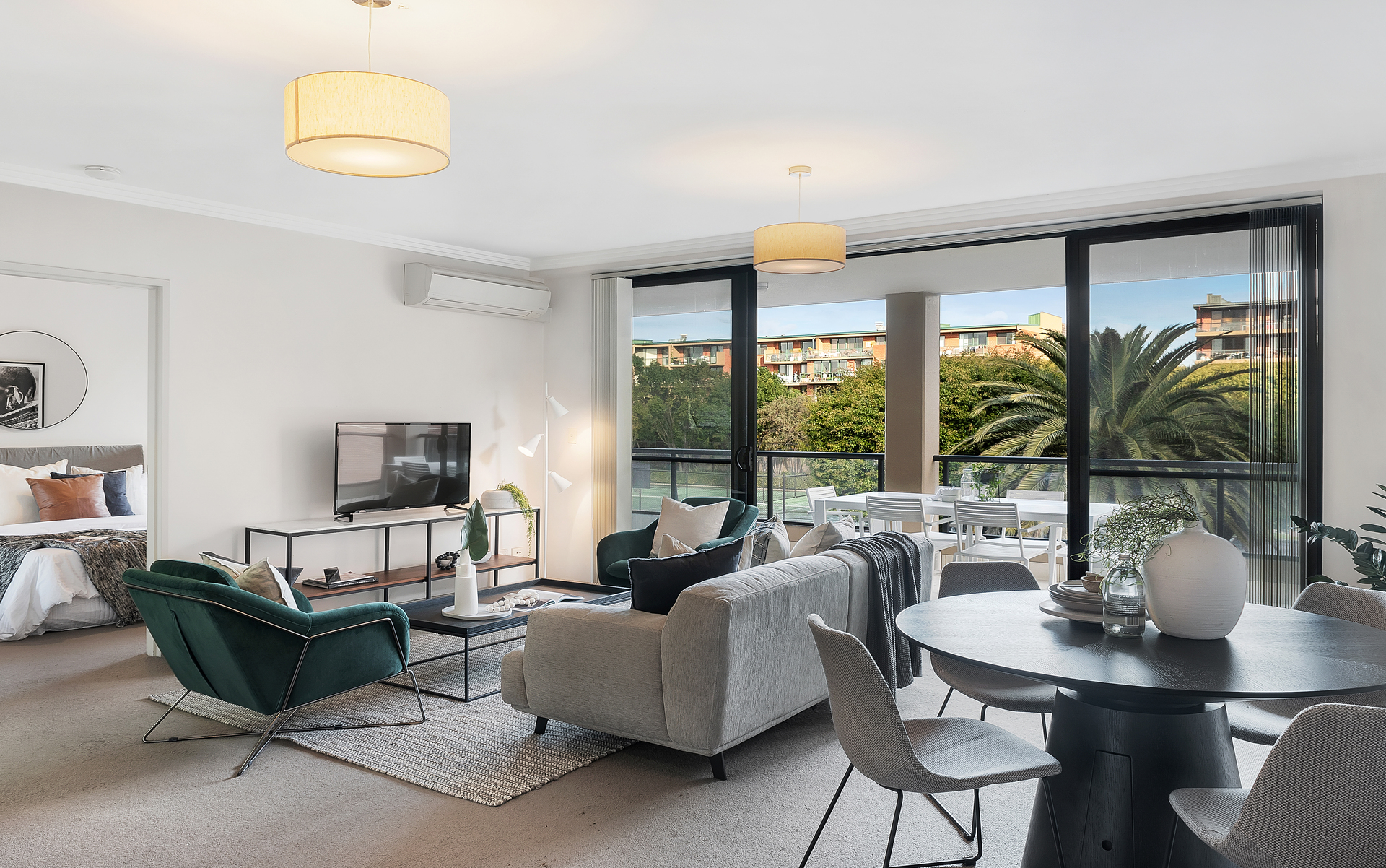 Placed just steps from the hip Erskineville Village, the eat streets of King and Crown Streets and minutes to Pinos, Campos, ErskineVilla, Bread & Circus and Fratelli Fresh, Sydney Park Village is one of the most sought after resort style buildings in inner Sydney. Offering incomparable facilities including 24 hour security, 60 visitor car spaces, outdoor pool, two tennis courts, gym and indoor heated lap pool - immerse yourself in a sanctuary away from any urban buzz.