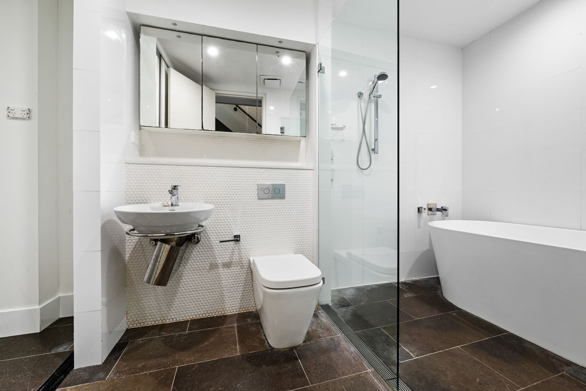 Stylish bathroom w stone tub & shower