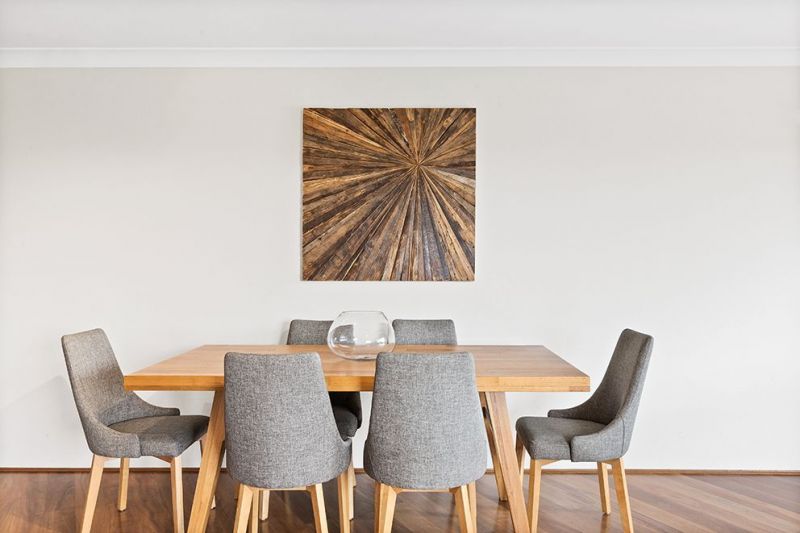 Open plan living & dining area w/ air-con & semi-solid blackbutt floors