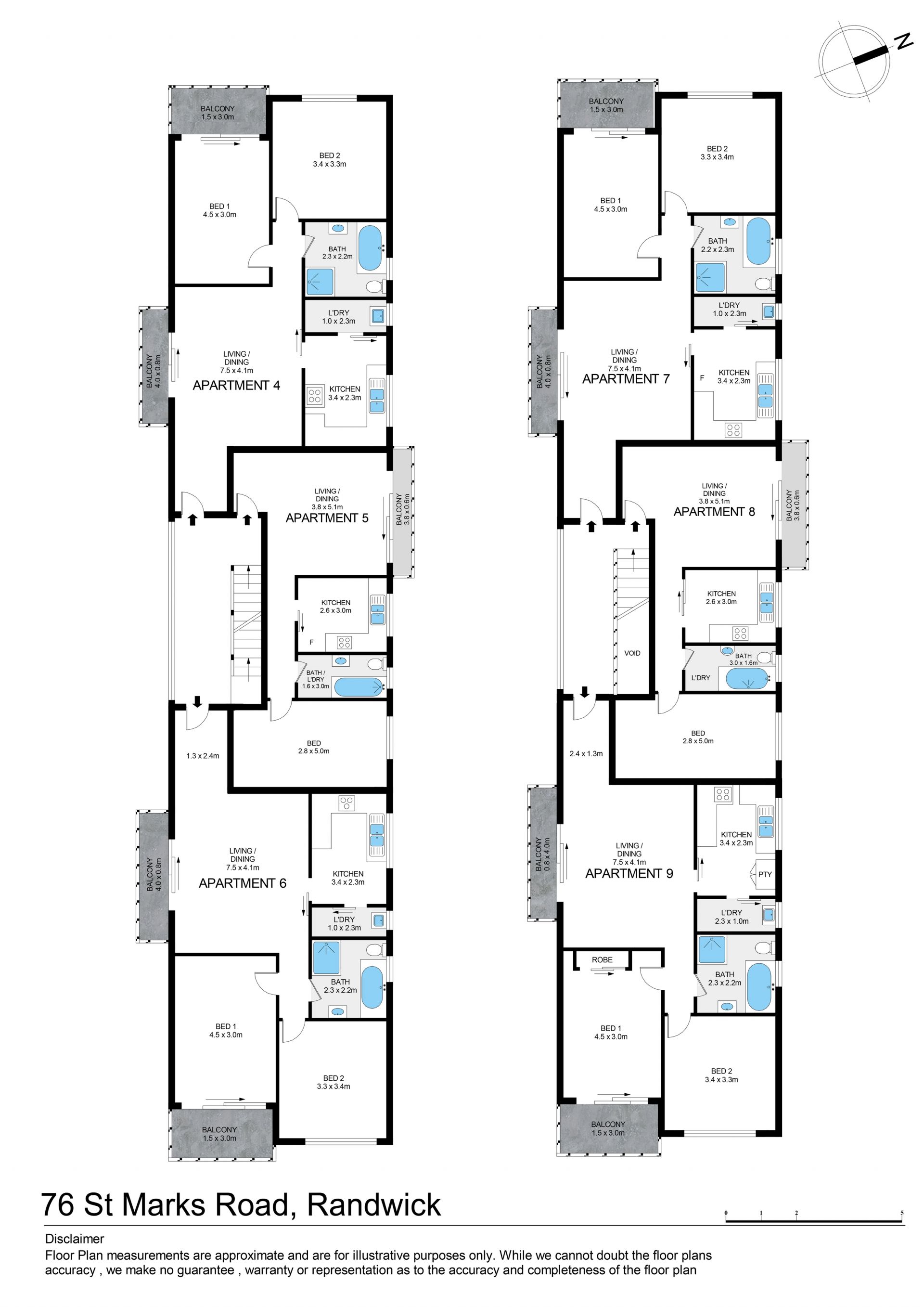 6 x 2 bedroom apartments (approx. 82 sqm)