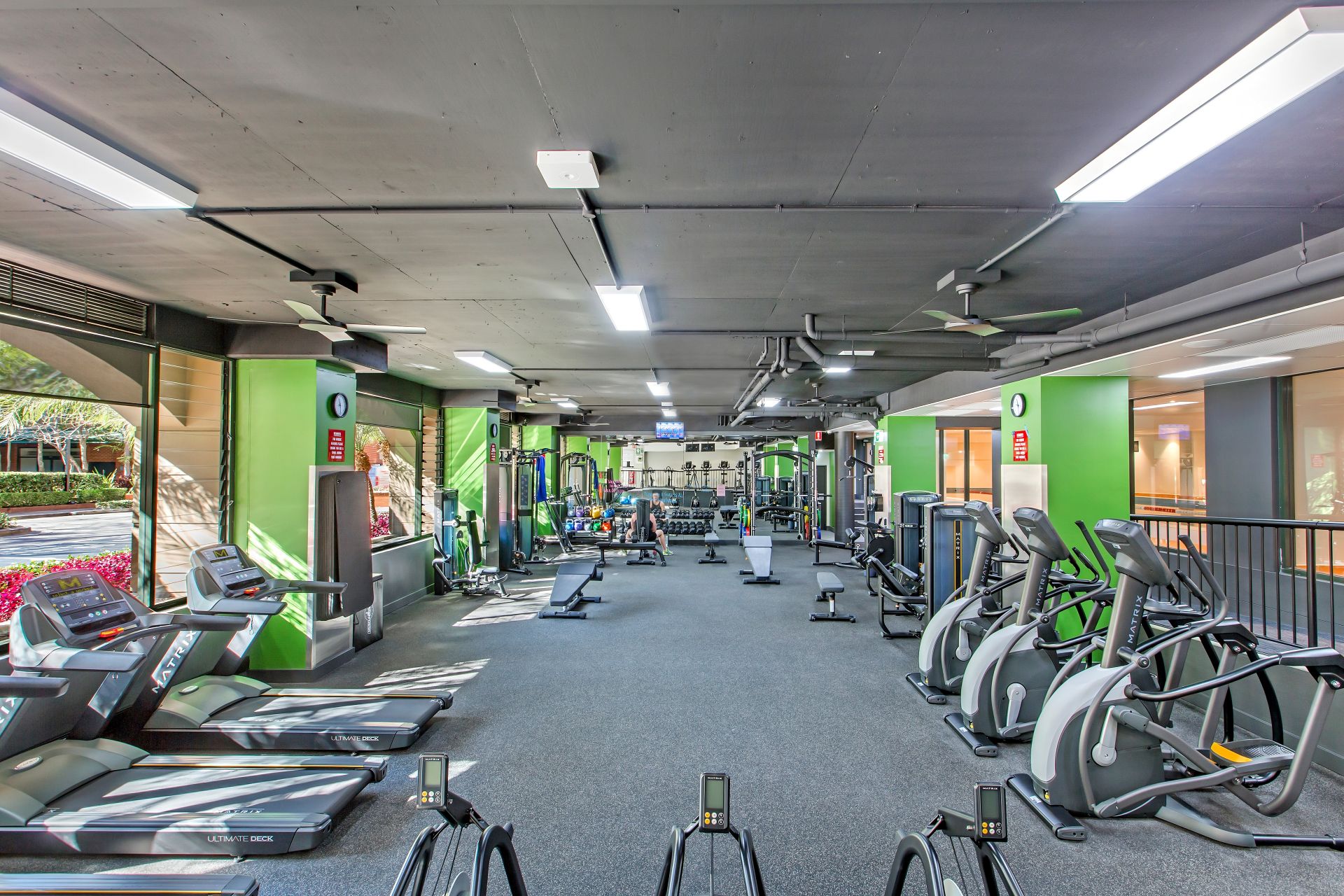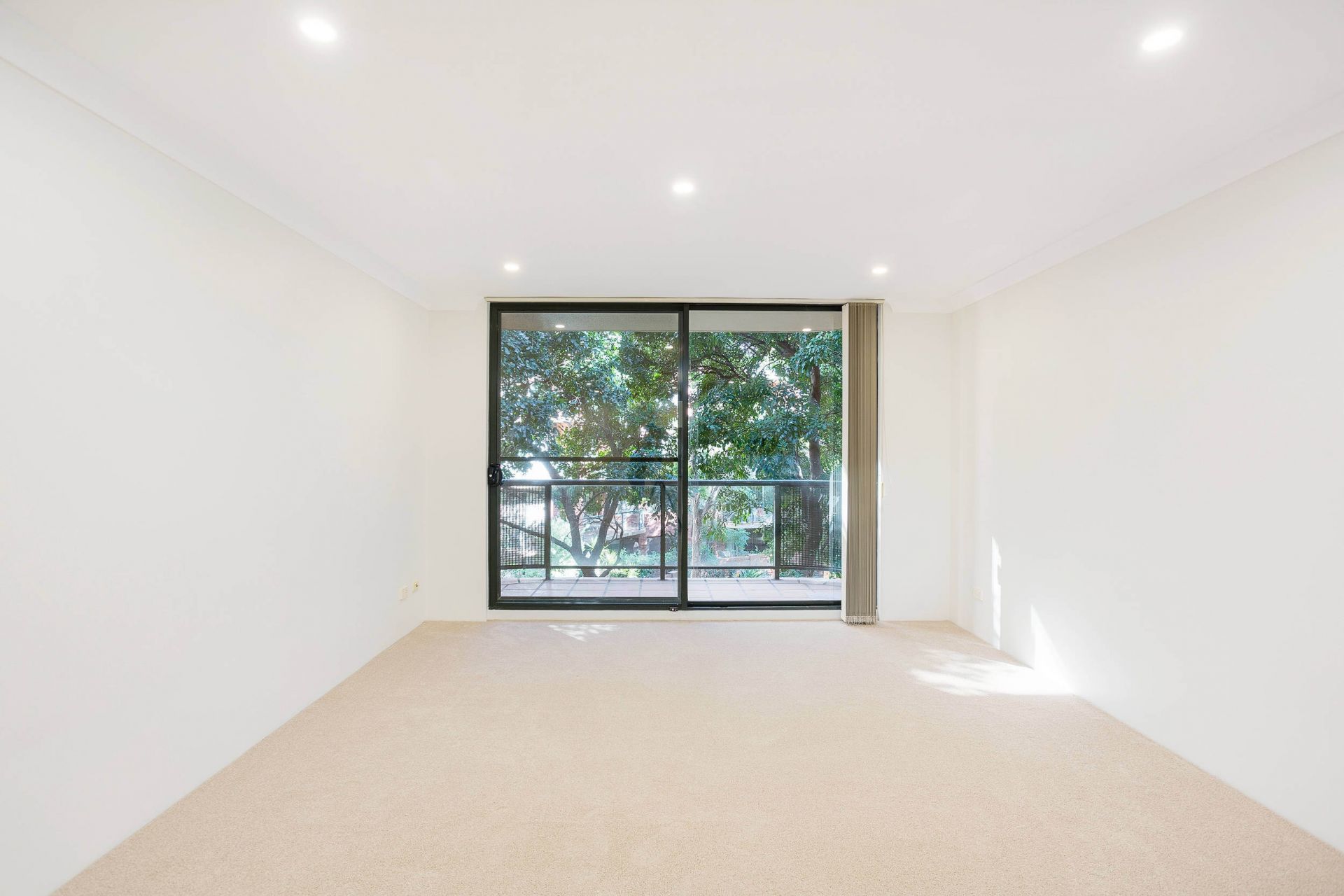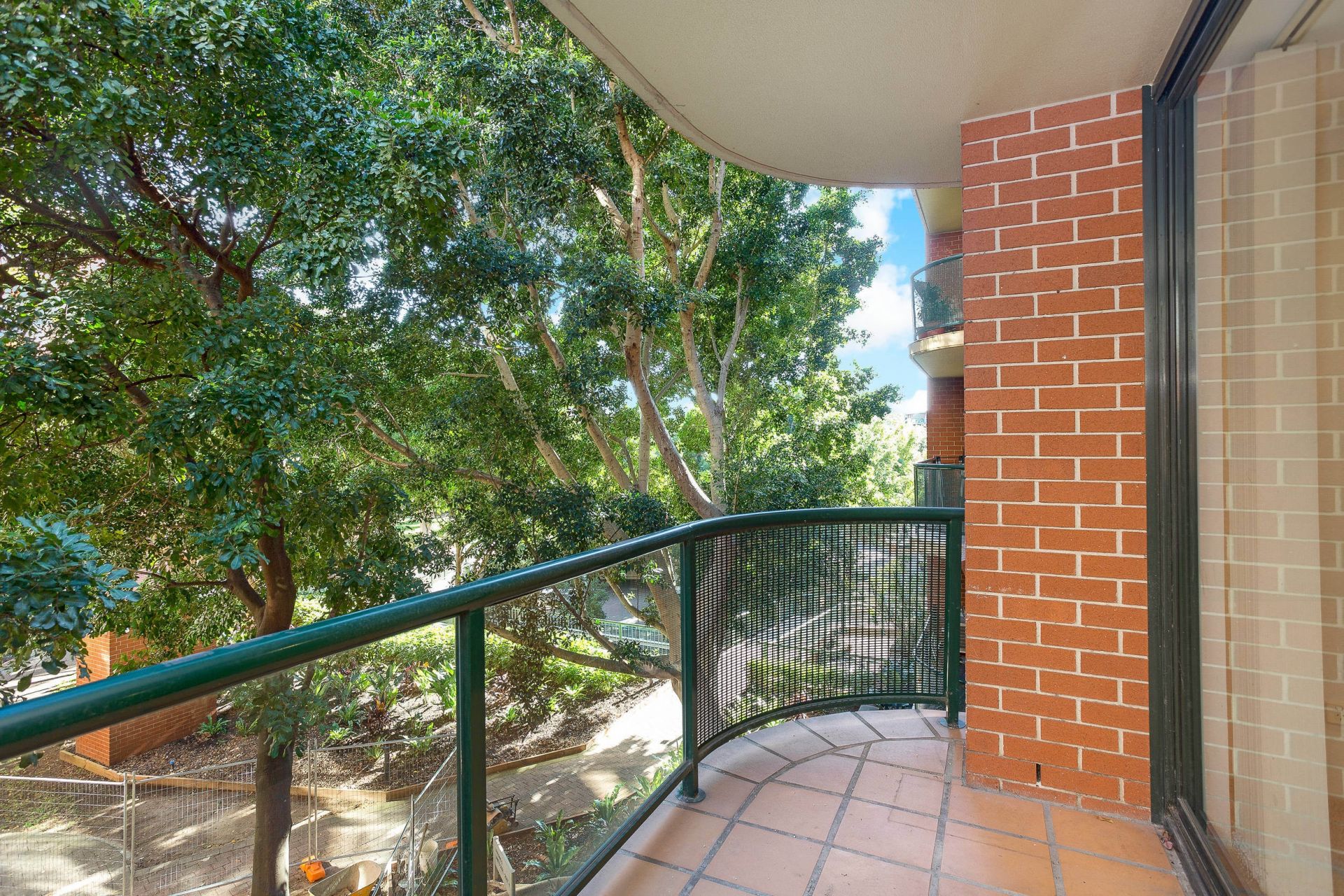 Covered balcony w/ internal garden views