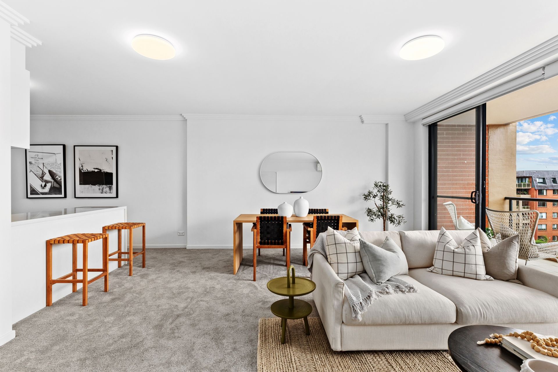 Spacious, open plan living & dining area w/ automatic blinds, new lighting + air con
