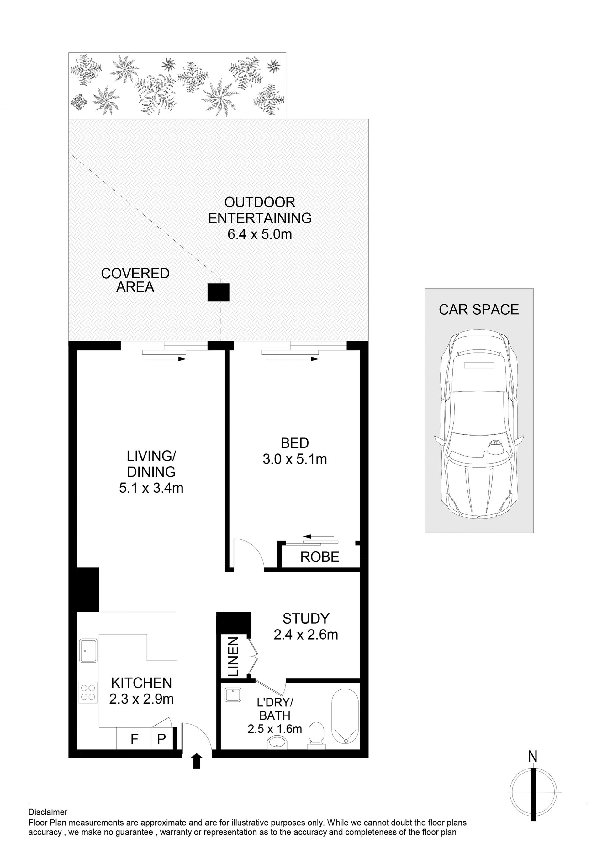 112sqm North facing one bedroom + study courtyard apartment w/parking