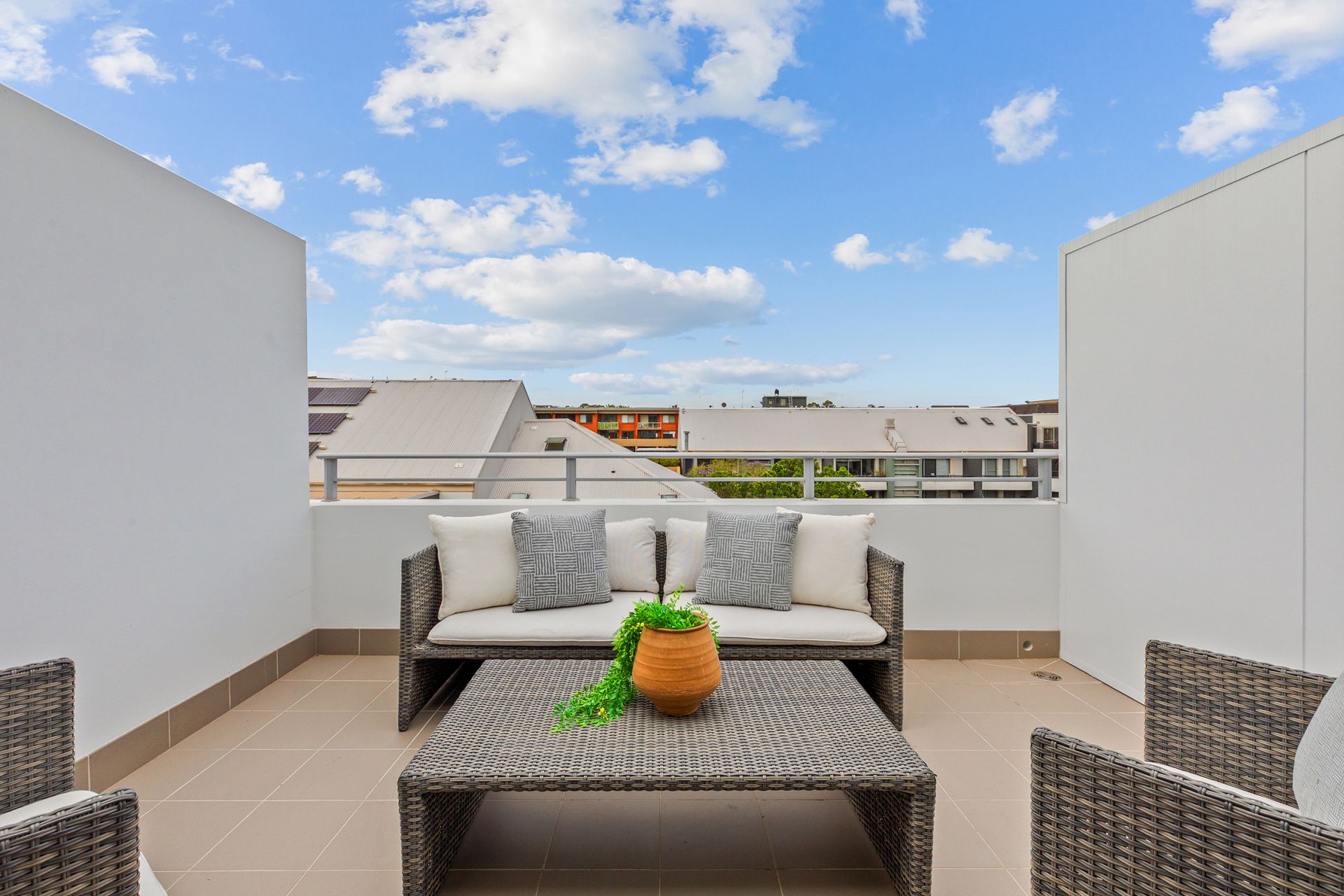 Designed by award-winning architects Allen Jack + Cottier, this elevated top-floor split-level apartment within the iconic 'Motto' complex captures beautiful garden & pool views w/ a terrace-like layout that brings sunlight & space to every corner. The upper-level living zone flows to a full-width north-facing entertainer's terrace, creating the perfect setting for alfresco dining or relaxing against the leafy resort-style backdrop. Both bedrooms are privately positioned across separate levels, including a generous master retreat w/ its own private terrace. A sleek gas kitchen, contemporary bathroom & separate laundry provide everyday comfort, while clean modern finishes & abundant natural light enhance the sense of ease throughout. Residents enjoy access to landscaped gardens, a resort-style outdoor pool, secure entry, & a welcoming community atmosphere - all just moments from Erskineville village, Sydney Park, King Street dining & fast transport links to the CBD.