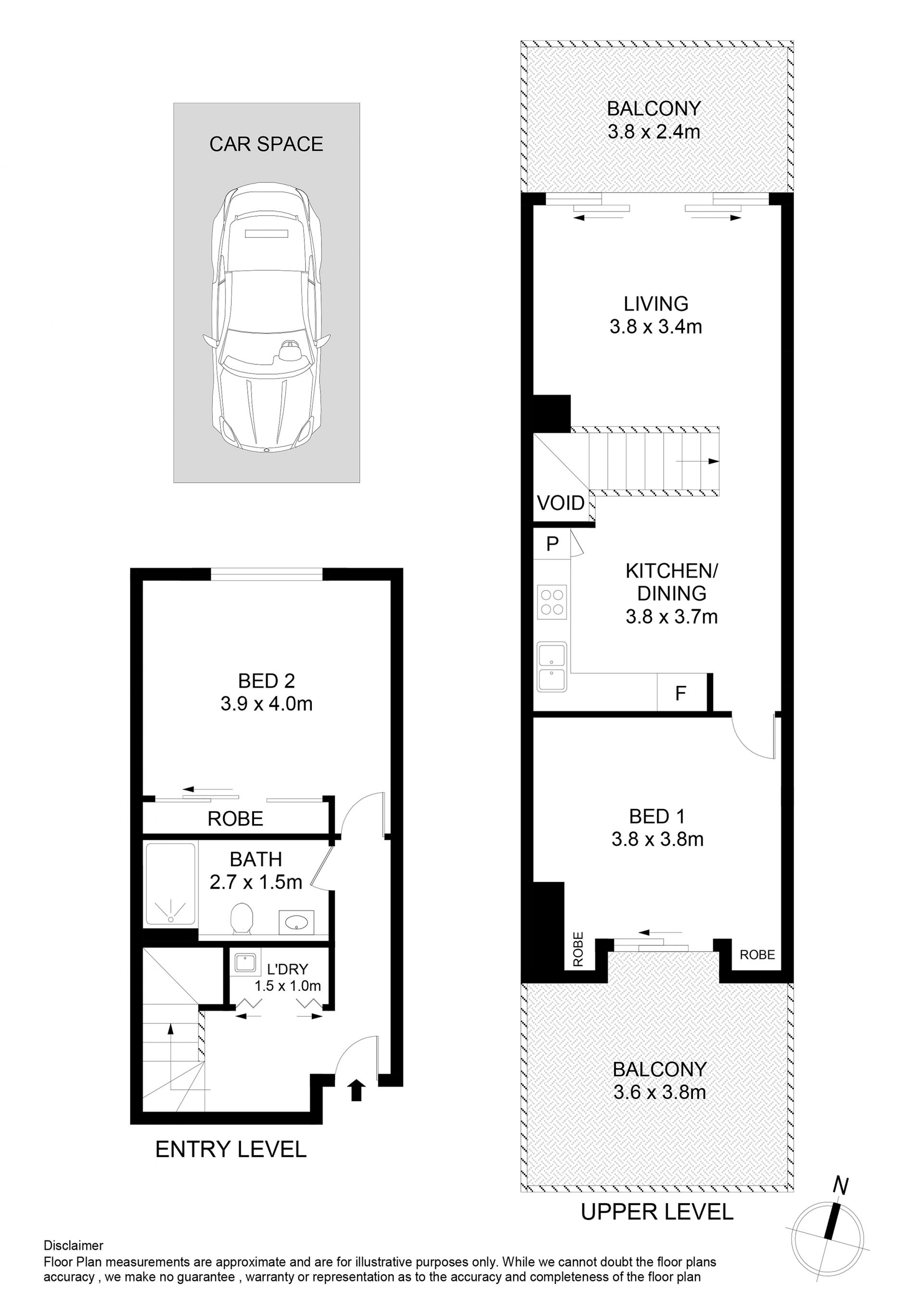 North facing split level two-bedroom apartment w/parking