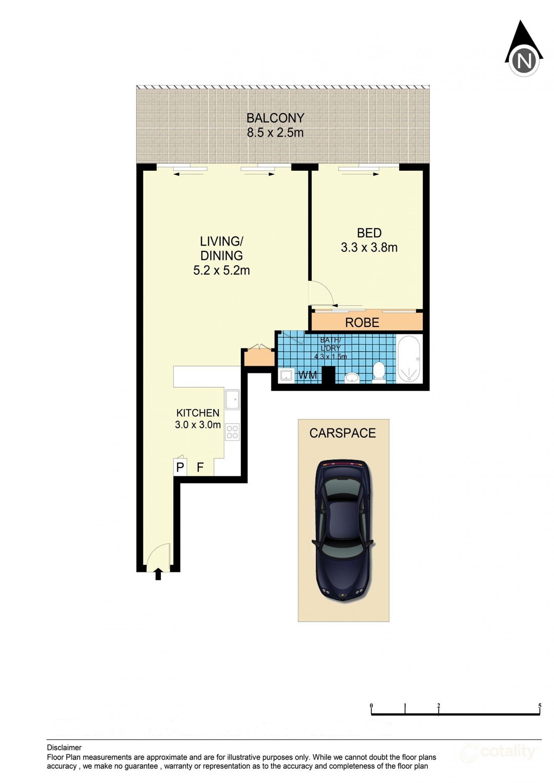 91sqm Internal North facing one bedroom apartment w/ full length undercover terrace + parking